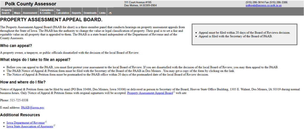 - https://www.assess.co.polk.ia.us/cgi-bin/web/tt/infoqry.cgi?tt=aboutus/protest