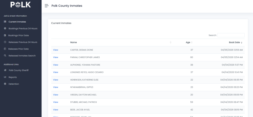 The Polk County jail roster displays a public record of people currently held in the county detention facility. This Polk County jail inmate listing gives basic booking details, custody status, and charges for each person in custody. The roster works as a quick reference for the current inmates held at the Polk County detention center. It helps families, attorneys, and the public review detention records, booking information, and jail population data in one place. Many county jails publish this list through an online system that updates several times each day.