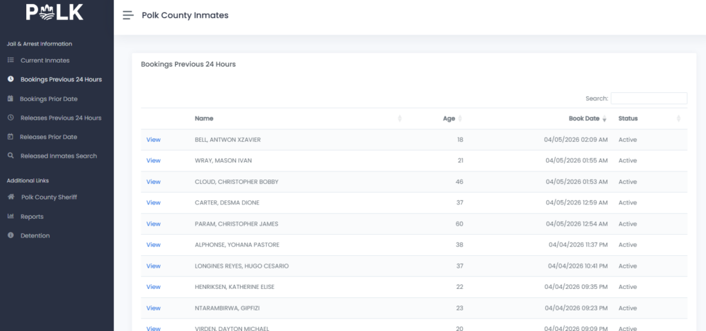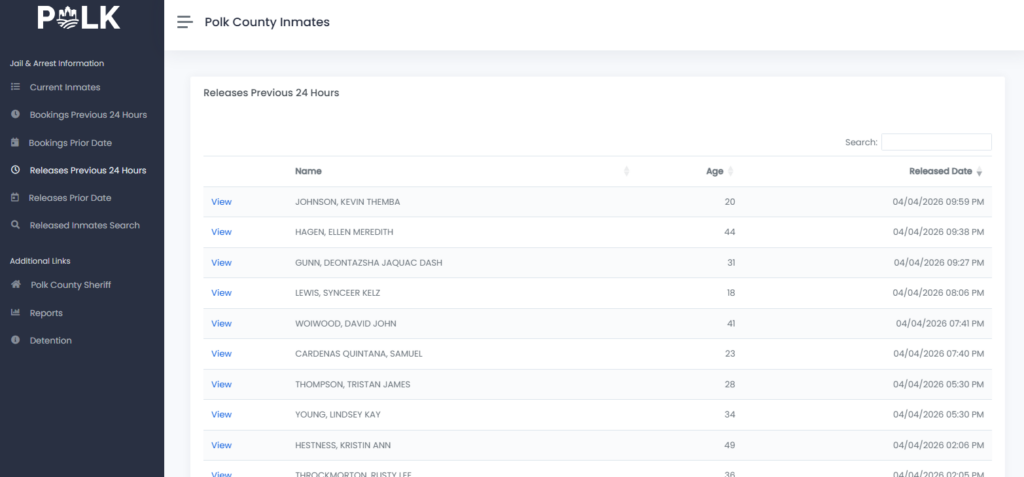 Polk County Jail allows searches for older bookings and releases using prior dates. Users can: