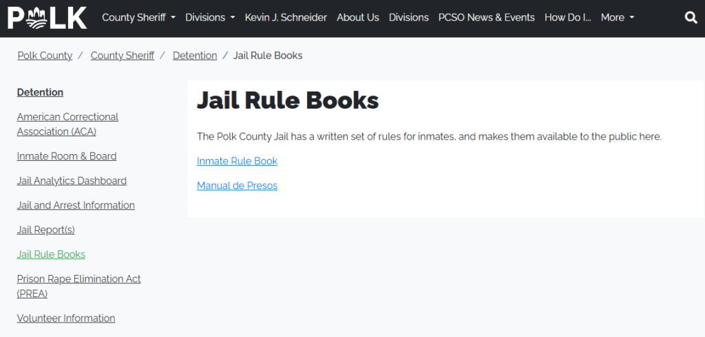 - https://www.polkcountyiowa.gov/county-sheriff/detention/jail-rule-books/