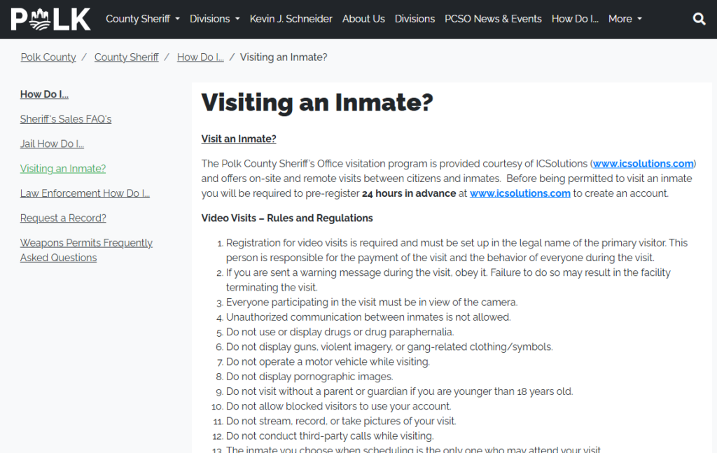 Visiting the Polk County Jail – Rules and Hours