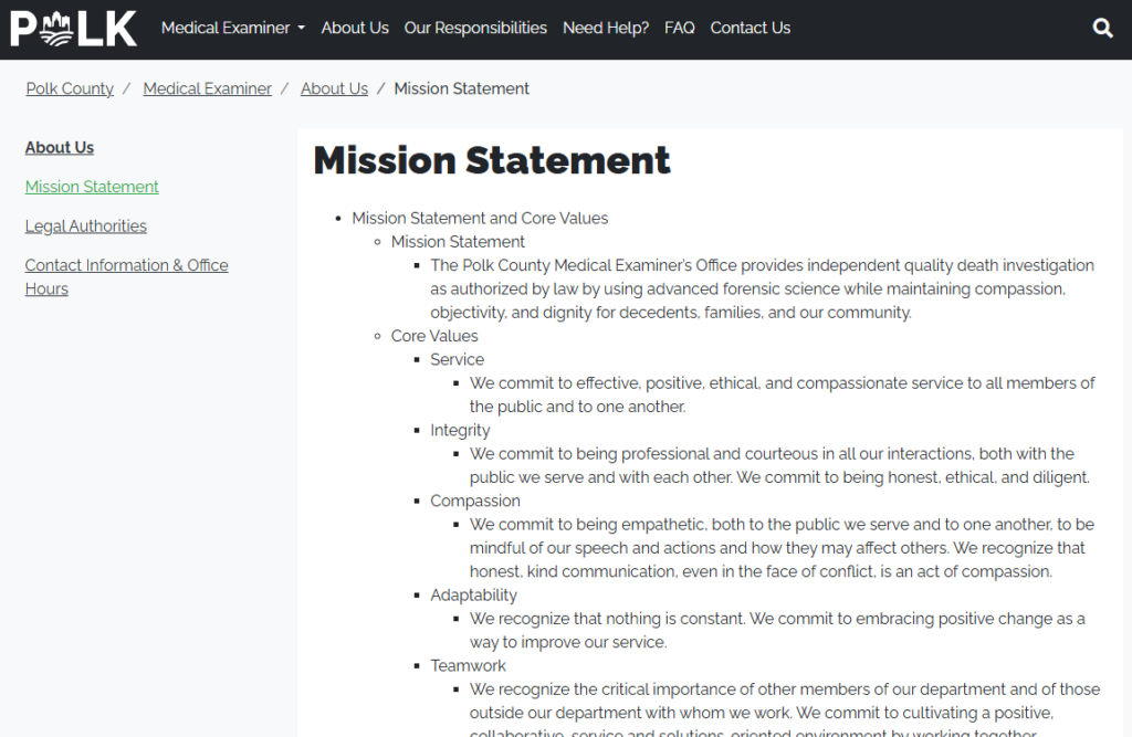 - https://www.polkcountyiowa.gov/medical-examiner/about-us/mission-statement/
