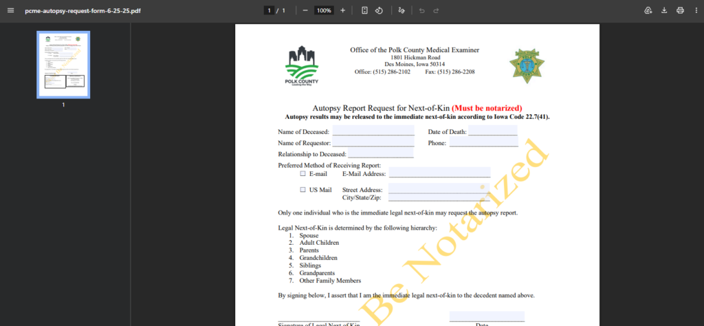 - https://www.polkcountyiowa.gov/media/msmdxit1/pcme-autopsy-request-form-6-25-25.pdf
