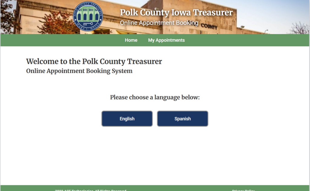 - https://polkcountyiowatreasurerappt.cxmflow.com/GetByKey/2d69a141-8267-4d11-ab32-87c99081420b/PCIAPPT/Book